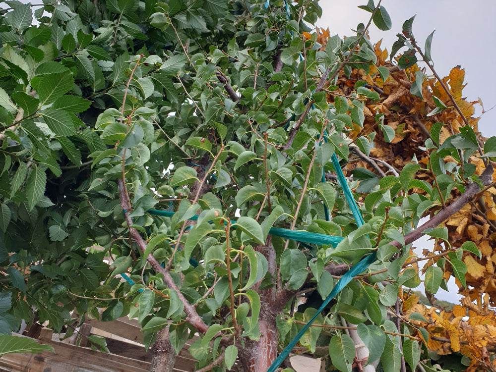 Das verwendete Bindematerial muss flexibel befestigt sein und darf den Baum beim Wachstum nicht einschnüren!