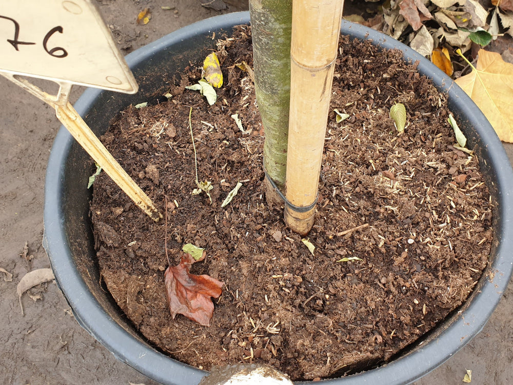 Damit der Ballen nicht austrocknet, sollte Ballenware umgehend gepflanzt werden. Ist eine zeitnahe Pflanzung nicht möglich, wird der Ballen feucht gehalten.