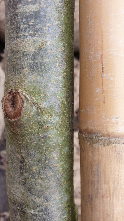 | j.bew.Sth | Strauch aus Steckholz | Diese Pflanze wurde aus einem bewurzelten Steckholz gezogen. Ein Steckholz (Sth) wird als "unbeblättertes Teilstück aus den unteren und mittleren Abschnitten verholzter Jahrestriebe sommergrüner Arten" definiert. Diese werden nach der ersten Frostperiode zum Zwecke vegetativer Vermehrung geschnitten. |