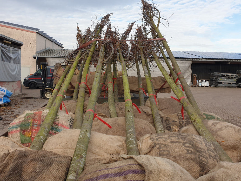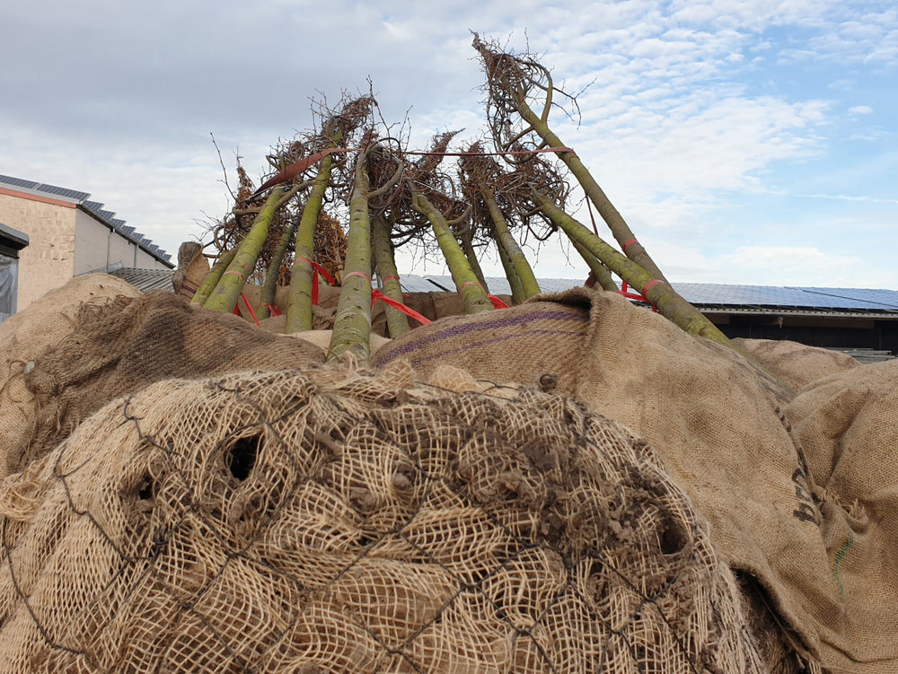 Damit der Ballen nicht austrocknet, sollte Ballenware umgehend gepflanzt werden. Ist eine zeitnahe Pflanzung nicht möglich, wird der Ballen feucht gehalten.