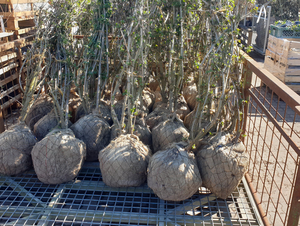 Damit der Ballen nicht austrocknet, sollte Ballenware umgehend gepflanzt werden. Ist eine zeitnahe Pflanzung nicht möglich, wird der Ballen feucht gehalten.