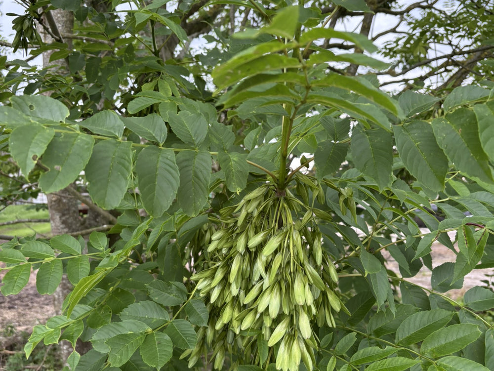 Blüte | Die grünlich-weißen Blüten erscheinen in Rispen und entwickeln sich zu geflügelten Nussfrüchten |