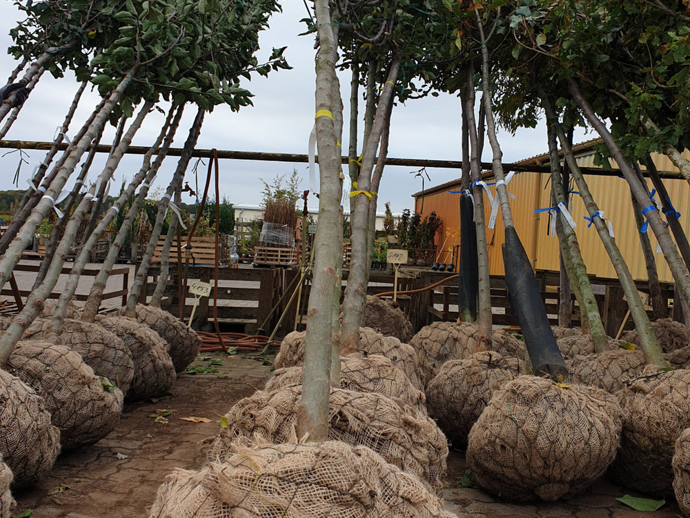 Damit der Ballen nicht austrocknet, sollte Ballenware umgehend gepflanzt werden. Ist eine zeitnahe Pflanzung nicht möglich, wird der Ballen feucht gehalten.